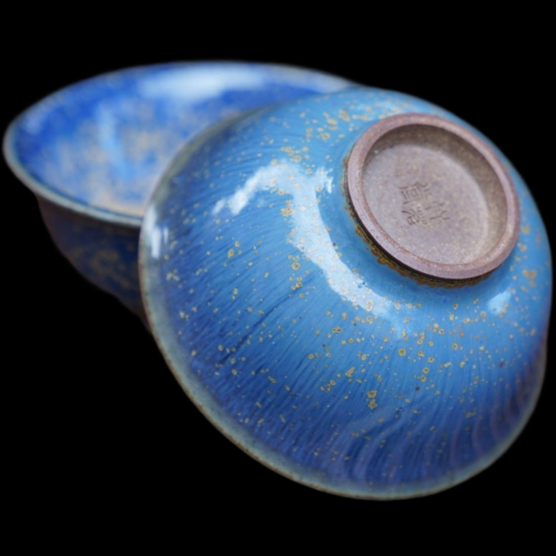 Artisan Jun Kiln Starring Blue Teacup Pair