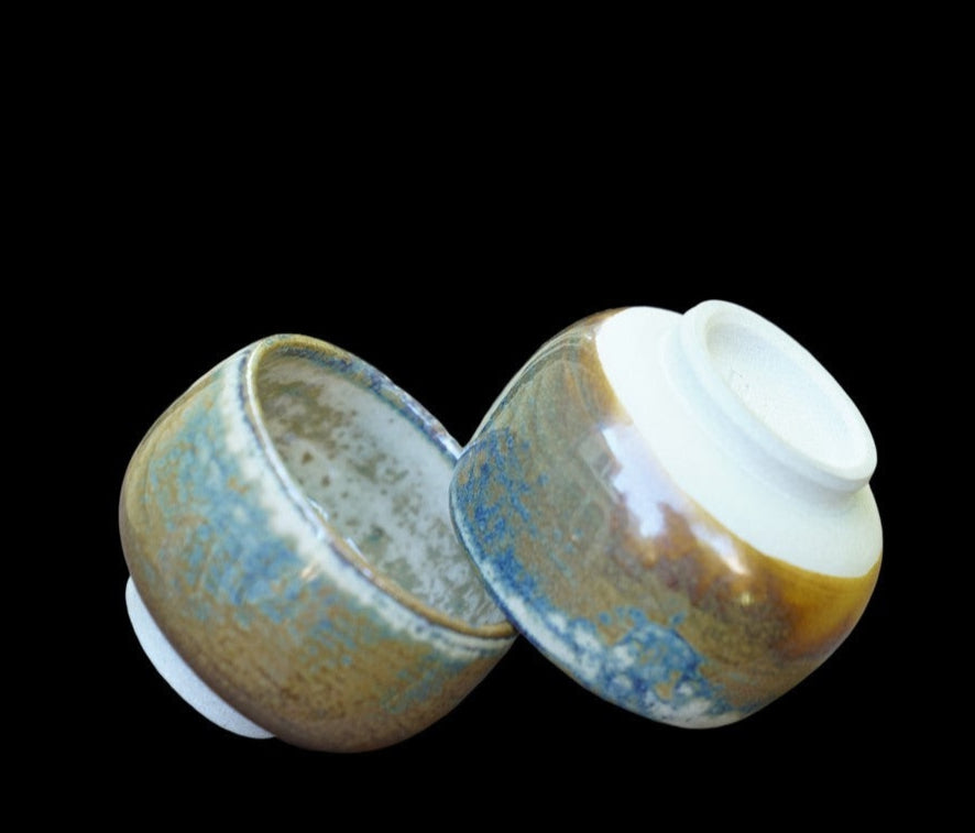 The cups are crafted in the classic Yuan Rong shape—round and harmonious—designed for a comfortable grip and an elegant presence on your tea table. With an 80 - 120ml capacity, the cup features a delicate white drop that flows gracefully downward, evoking imagery of a man’s tie or, more romantically, a feather drifting through the autumn forest. The intriguing color variations in the glaze capture the imagination and invite reflection, adding an element of wonder to each sip of tea.