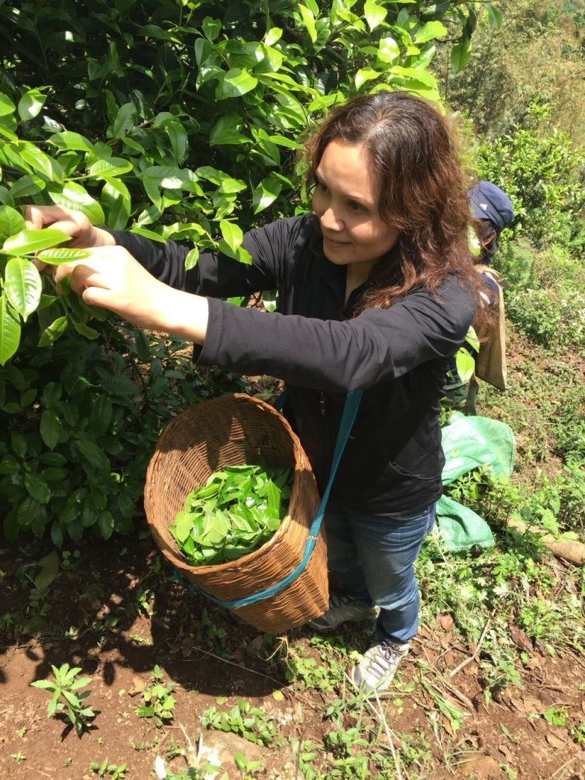 This tea was sourced by Victoria on her 2017 Yunnan tea trip. It is from Da Xue Shan mountain of Mengku, one of the major sought after Pu-erh tea producing regions of Yunnan. Da Xue Shan, literally big snow mountain, the village sits at an elevation of 1800 meters on a ridge of the Da Xue Shan mountain, thus the village name. It is a very remote area, and the mountain road to the village is somewhat dangerous. It was a little scary for Victoria riding in a truck with the farmer to visit the village on the muddy road and the particular distant mountain, which is fairly unknown to the outside world. But it was well worth it, as the micro terroir is so untouched and pristine that Victoria immediately fell in love with the beautiful high mountain Pu-erh tree land. From plucking the leaves to the final pressing, Victoria took great care in monitoring the whole tea production process. Her efforts paid off handsomely.
