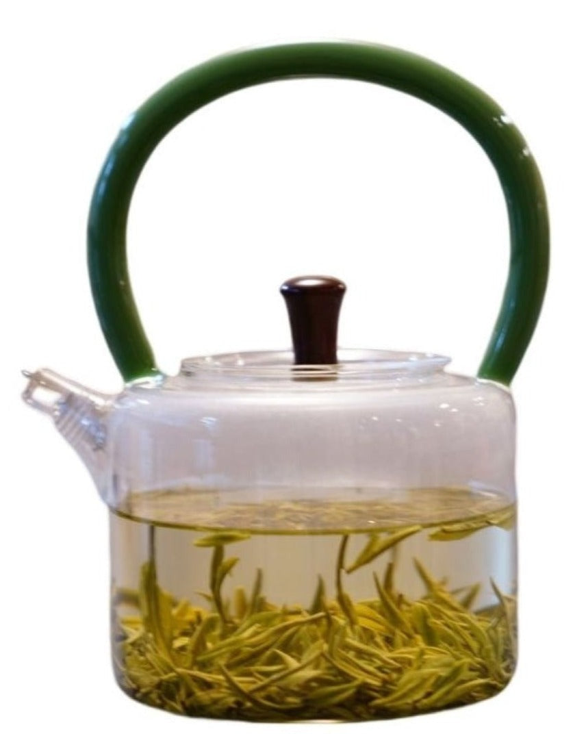 Borosilicate Glass Artisan Teapot with Strainer, Hand-blown Tea Kettle, Tea Warmer