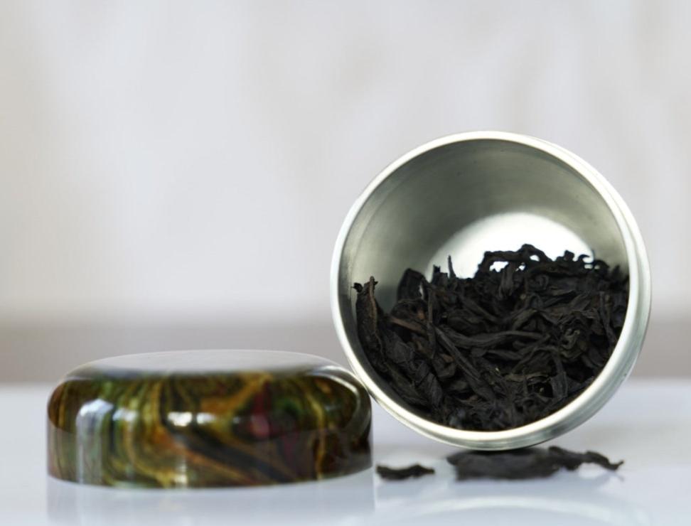 This tea caddy comes from Gejiu city, Yunnan province where it has a tradition of handcrafting exquisite tinware products. This small lacquered tea tin has a solid thick body, feels...