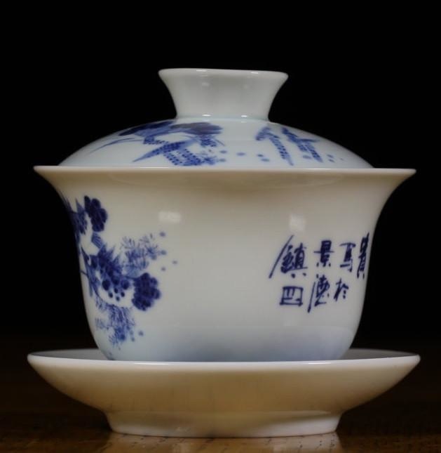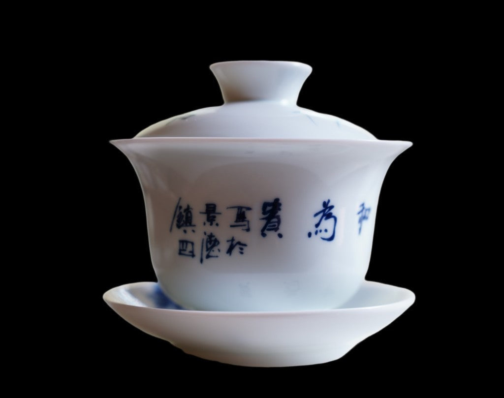 Jingdezhen Artisan Blue and White Porcelain Gaiwan Priceless Harmony