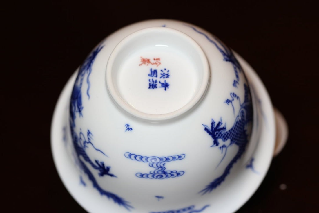 Blue and White Porcelain Gaiwan Dragon Handpainted