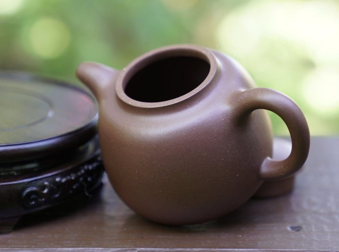 This teapot is crafted by Zhou Pin who has been crafting teapots for 20 years with an extensive skill set in crafting teapots. She is the wife of teapot master Wu Jun from whom Victoria had sourced teapots in the past. This teapot is a great value and offers an excellent opportunity for owning a genuine zisha teapot. The clay is authentic Di Cao Qing.